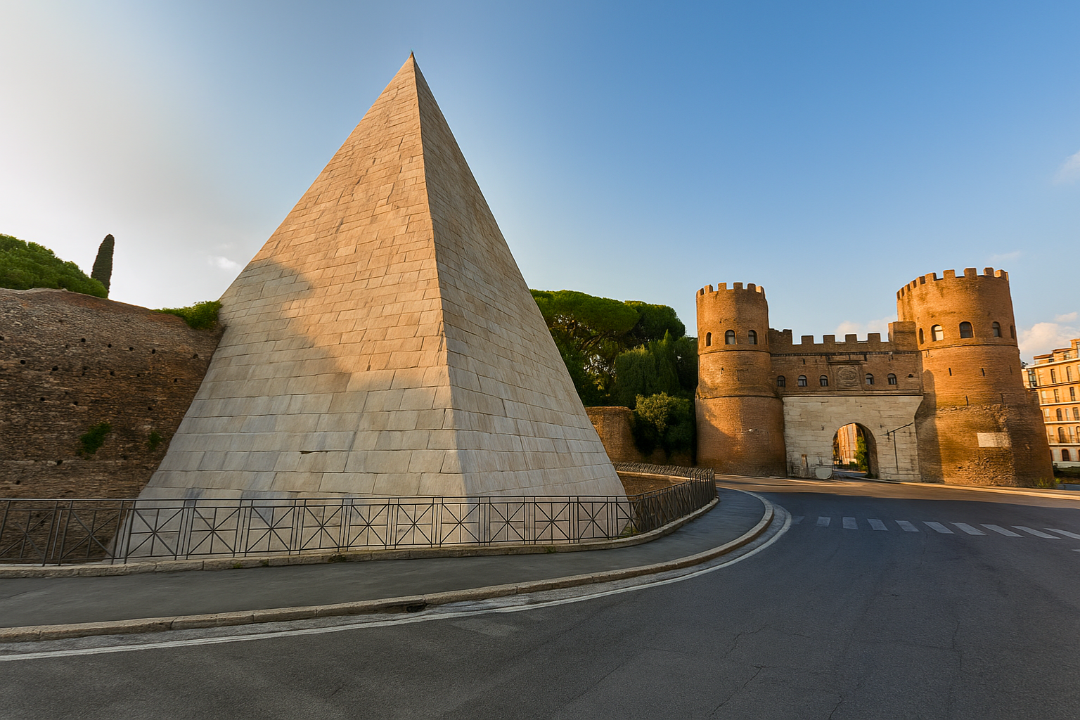 • A striking Egyptian-style pyramid in the middle of modern Rome