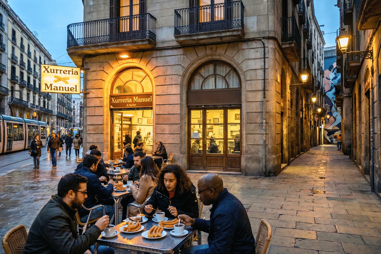 In Barcelona, churros con chocolate aren’t just dessert — they’re an experience. Thick, crispy churros dipped into dense, almost pudding-like hot chocolate.