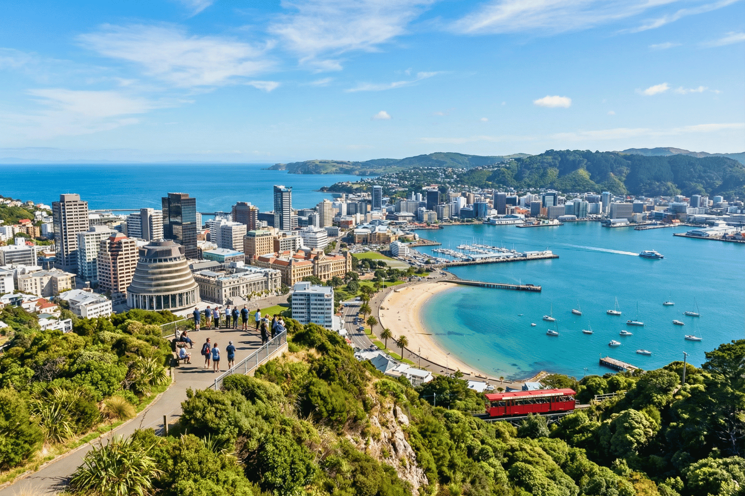 No Wellington walking tour is complete without a stop at Mount Victoria Lookout. A short hike from the city center leads you to breathtaking panoramic views of Wellington Harbour, the city skyline, and the surrounding hills.