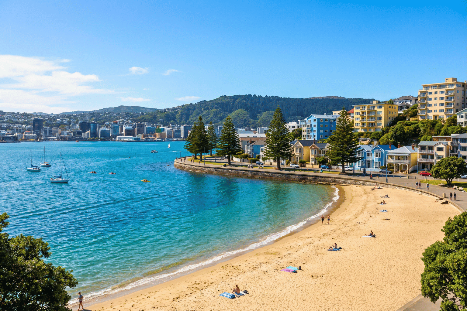 For a scenic waterfront experience, head to Oriental Bay. This popular beach area is perfect for a leisurely stroll on your self-guided tour Wellington, offering panoramic views of the harbor, sandy beaches, and colorful boats.