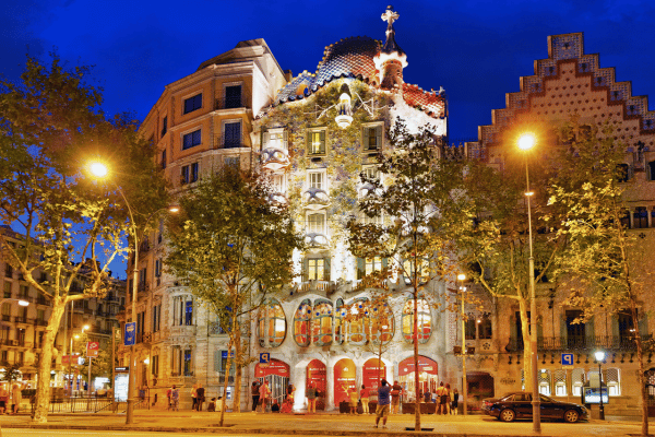 Look up at this swirling Modernista façade, balconies like stone flowers and a fan-shaped entrance canopy. It feels like a fantasy palace quietly joining the city’s Christmas decorations.