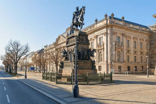 Stand on elegant cobblestones hiding a dark secret. Look down through glass at empty shelves—the "Empty Library" marking where thousands of books burned in flames of censorship.