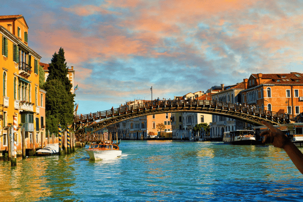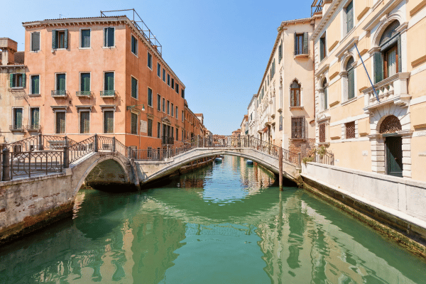Enjoy a dramatic Venice canal district walk view, a highlight of your Venice mystery tour and Venice off the beaten path route.