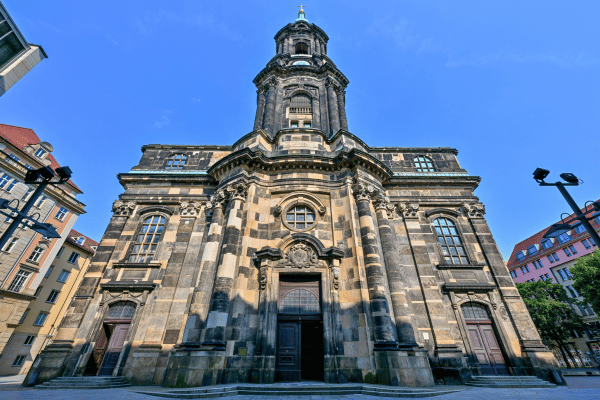 Stand before Dresden's quiet giant—an 800-year-old church with a dramatic history, peaceful interior, and a tower climb that rewards you with breathtaking views over the glittering markets below.