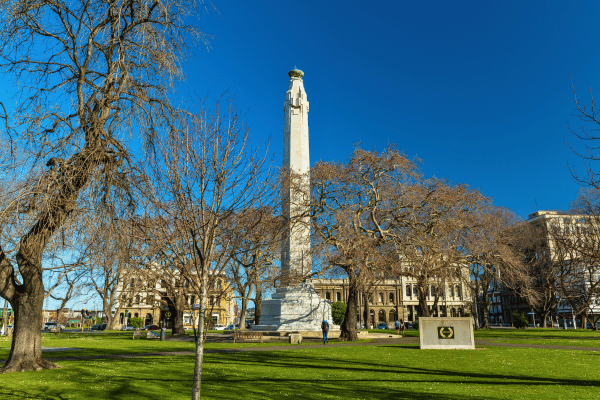 • Pause for reflection at the Queens Gardens Cenotaph memorial.