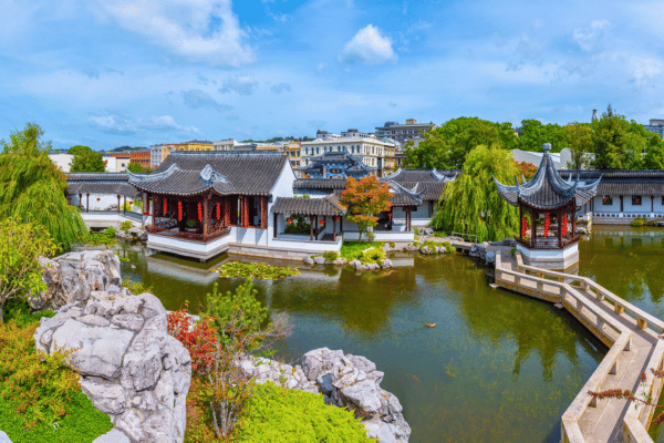 Serene paifang, zig-zag bridge, koi pond and pavilions — an authentic Chinese scholar’s garden in the city centre.
