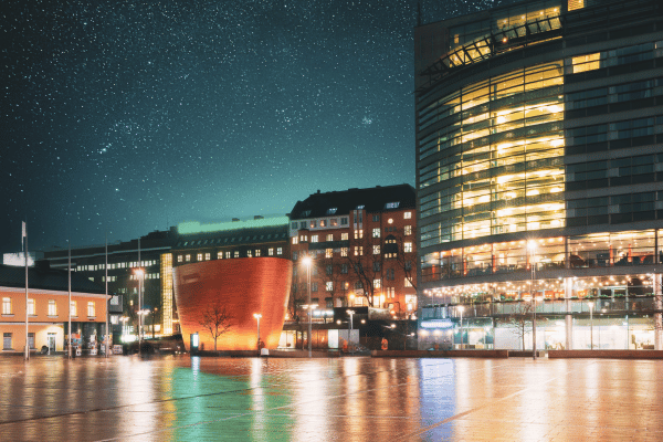 Climb sci-fi rooftop mounds, snap glowing winter photos, and soak in quirky architecture above the Amos Rex museum. Pure holiday whimsy.