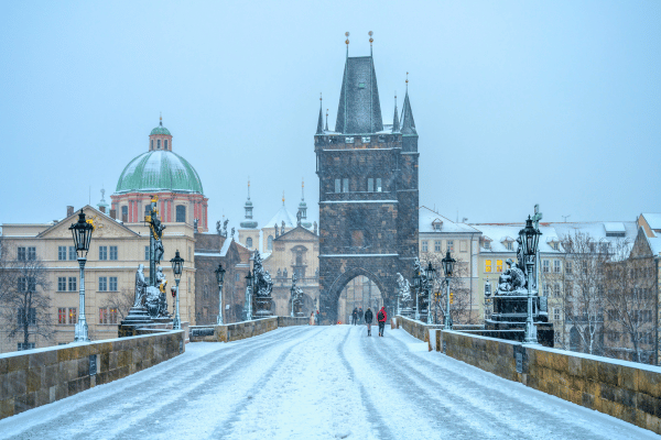 Step onto Charles Bridge and boom—instant Christmas fairytale. Gas lamps glow, statues shimmer, music floats, and the Vltava sparkles like it’s auditioning for a movie.