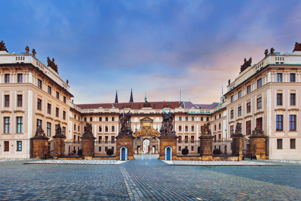 Climb these zig-zag castle steps like you're entering a Christmas fairytale. A thousand years of royal drama, icy air, and postcard views—Prague’s magic literally begins under your feet.