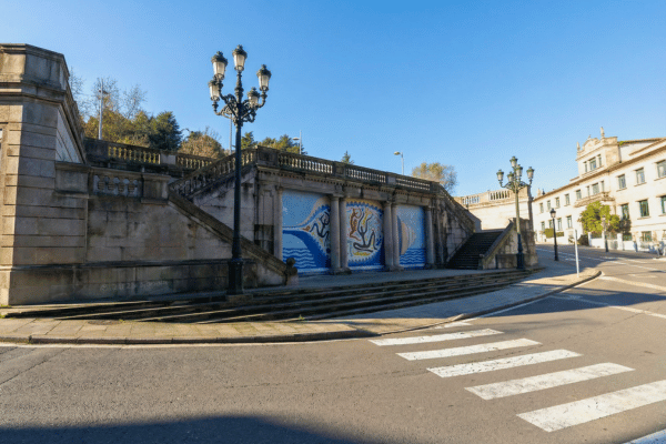 A 10x20-meter burst of color beneath stone stairs—fisherwoman, crashing waves, Celtic knots. Vigo earned the nickname "City of Color," and once you start noticing, murals ambush you everywhere. This one just happens to tower.