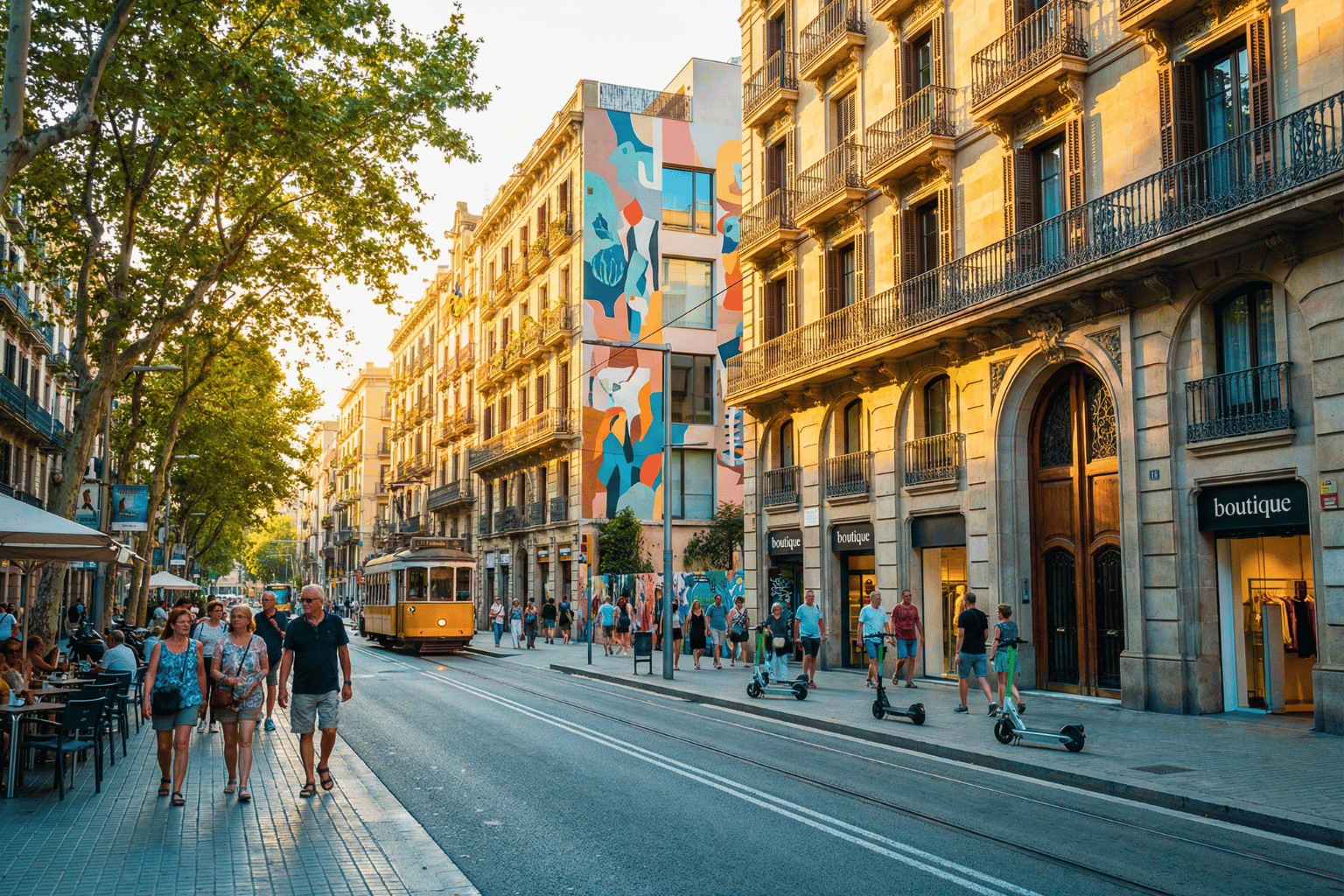 This is also where District Barcelona shows off its architectural ambition. Modernisme buildings line the streets — ornate façades, wrought-iron balconies, colorful tiles, and sculptural rooftops. Look up often; Eixample rewards attention.