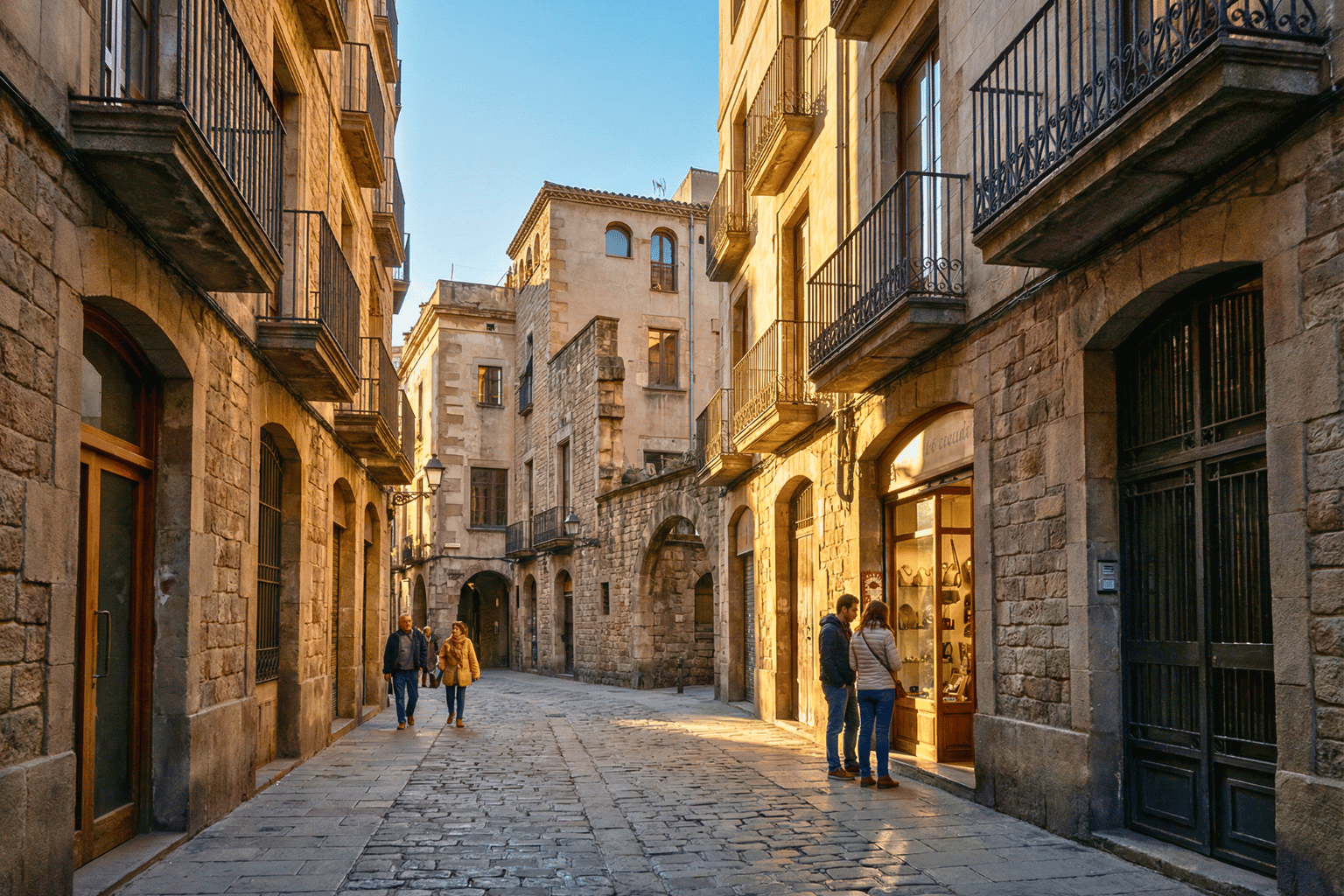As you walk, look up. Laundry lines stretch between buildings, stone balconies lean inward, and sunlight slips through in thin ribbons. You’ll pass hidden squares like Plaça Sant Felip Neri, where history whispers rather than shouts.